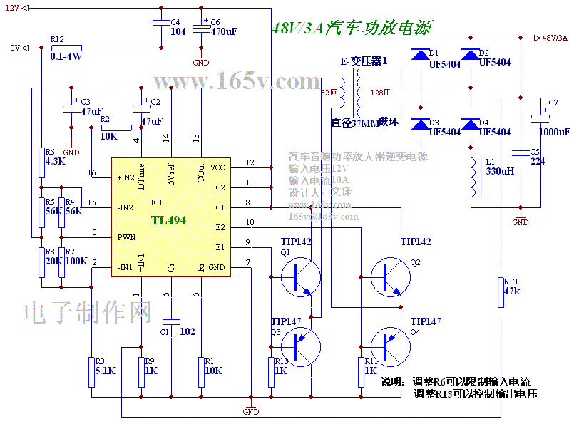 TL494控制汽车音响逆变电源:是高级轿车的高保真音响电源。