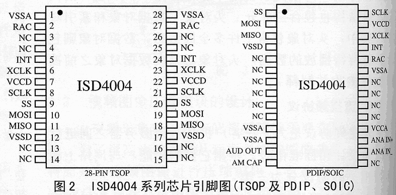 ISD系列语音芯片是美国ISD公司推出的产品。该系列语音芯片采用多电平直接接模拟存储(Chip Corder)专利技术,声音不需要A/D转换和压缩,每个采样值直接存储在片内的闪烁存储器中,没有A/D转换误差,因此能够真实、自然地再现语音、音乐及效果声。避免了一般固体录音电路量化和压缩造成的量化噪声和金属声。