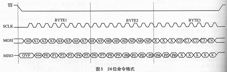 ⑦使用“读”指令会使中断状态位移出ISD的MISO引脚时,控制及地址数据也同步从MOSI端移入。