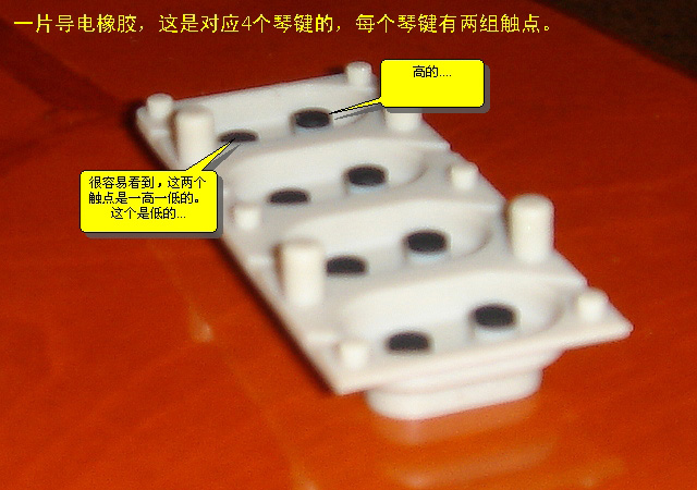 | 选择分类:当前分类——电子制作 相关联或者相类似的文章: 怎样安装AT51编程板的USB转串口软件?(8206) 装在火柴盒里的悄悄听别人讲话的发射器(1999) 红外感应电子狗制作详解(1560) 台灯触摸开关(1560) ++ 带限流保护的可调稳压电源 (1331) 分立电子开关、OTL功放详解(1274) 用单片机控制字符型液晶显示模块(1249) 厨房定时器(1160) 电子制作专用微型模块盒子(1132) 性能可靠的60W石英灯用电子变压器(1091) 做梦机的制作(1078) 自己动手制作无线话筒(944) MA21小型电子调速器的制作(939) 500米无外壳四通道遥控模块(926) 关于“D40”最早的文章(907) 用三端稳压LM317制作的甲类功放(898) ++ 汽车电池电压监视器 ++(897) 电子小鸡(896) 简单实用的遥控开关(895) 简易电话机测试装置(889) 首页 前页 后页 尾页 本站推荐: | 电子琴的力度是怎样实现的 相信用MIDI制作音乐的朋友,最熟悉的MIDI参数就是Velocity(力度)了,这不仅是最常用的,而且是大部分音序软件的KEY编辑窗口缺省显示的。不过,大家是否注意到:“Velocity”这个单词在英文中的意思并不是“力度”,而是“速度、速率”。跟音乐有关的力度术语,英文名应该是“Dynamic”! 这是为什么呢?难道MIDI标准制定的时候,专家们搞错了吗?........... 呵呵~当然不是,这是因为,MIDI就是用“速度”来模拟“力度”的! 大家知道,最常用的MIDI输入设备就是MIDI键盘,包括专门的MIDI键盘以及合成器、电子琴、电钢琴等等,这些键盘是如何来产生力度参数的呢? 简单给大家分析一下。 一般MIDI键盘产生MIDI音符的过程是这样的:按下键盘、利用键盘下方的导电橡胶和电路的接通,实现“键导通”信息,然后触发音源发声或者进入音序器录音。 下面来看一下导电橡胶的样子:注意,每一个琴键都对应两个触点开关,嗯?为什么一个琴键需要两个“开关”呢,玄机就在这里哦。 (这张照片照得不清晰,菜啊~~) ![]() 下面这张照片,是键盘底部的结构,也就是键盘下面倒过来看的样子......, 露出键盘的地方,上面的电路板已经拆掉了。 接下来这张:是拆下来这块键盘电路板的照片,大家根据图上的注解,理解琴键按下后,电路是如何接通的。 ![]() 不知道大家看明白没有,水平有限,只能说这些啦~:) ![]() 最后,再顺便说说Aftertouch(触后)参数,这在MIDI键盘上是另一种独立电路产生的,请看图: ![]() 全文完~~欢迎讨论、指正! 1、 本站不保证以上观点正确,就算是本站原创作品,本站也不保证内容正确。 2、如果您拥有本文版权,并且不想在本站转载,请书面通知本站立即删除并且向您公开道歉! |