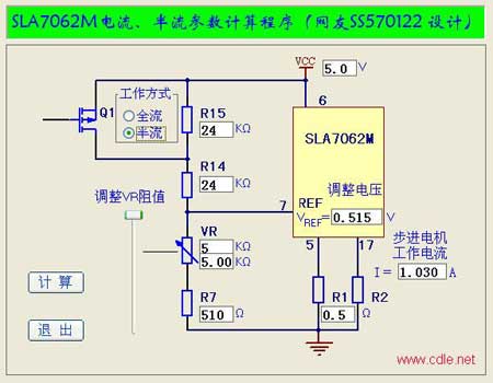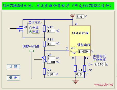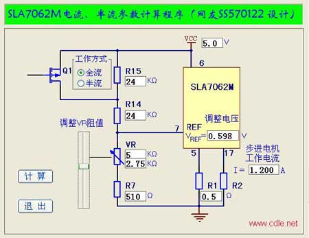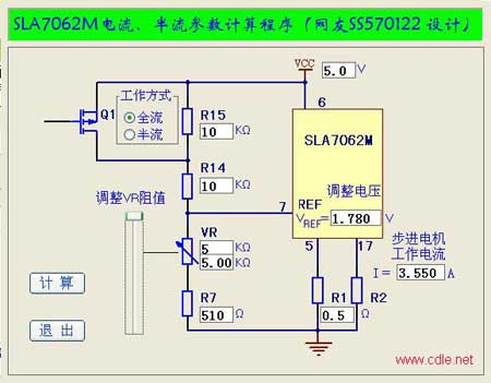 SLA7062M驱动电流取样的控制电压调整很重要,要和所配接的电机相适应,我用C++Builder编了一个小程序,可以任意模拟调整几个相关元件的参数,并看到其控制电压和驱动电流的实际变化,节省了不少调试时间。
