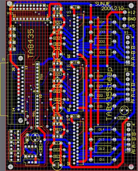 好了,言归正传,我深知业余玩家的DIY艰辛,应众多网友要求,也为了实现我的诺言,今天将整理后的可加工制版的TA8435H三轴驱动板原理图和PCB图发布出来与网友共享,共同制作出更好的作品。 初学网友在制作时可能遇到的一些问题,我会在说明中注释,不能给大家逐一解答,敬请谅解。另外有哪位网友加工成品板,千万别忘了给我带一块啊 ,我会付银子的啊! 另外我做的串口通讯大电流(4A)控制版试验板也已经调试成功,由于在硬件设计制作需要较多的相关专业知识和软件配合上较为麻烦,不太适合业余网友DIY制作。 TA8435三轴驱动板原理图