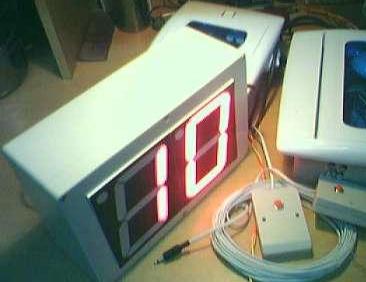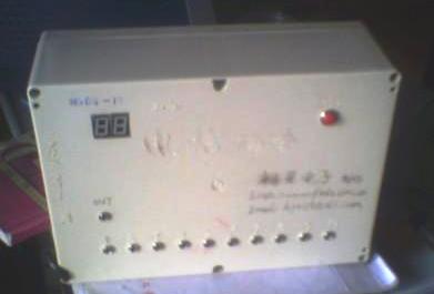抢答器的后面板图,有两位小数码显示,红色为复位按钮,下面插口为抢答按钮插口。