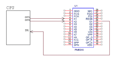 (2)并行地址接口: 在并行地址接口工作方式下,K1为同步时钟端,K2~K8为7位并行地址输入端,最大可分为27=128段。O1、O2位两种极性相反的忙信号输出,可由用户选择使用其中一条输出。作为忙信号,O1在播放语音时为高,放音完毕拉低;O2与其正好相反。 并行地址接口工作方式的电路如图5,工作时序如图6。 ![]() 图5 并行地址接口工作方式电路 ![]() 图6 并行地址接口工作方式时序图 (三)RESET时序 用单片机口线控制PM60的复位时,需要注意给完RESET管脚低信号后需要延迟300ms的时间,才能开始PM60的放音操作。放音操作,否则不能正常复位。 ![]() 图七 PM60的RESET时序 7. PM60的编程软件 PM60的编程软件的使用环境继承了PM50编程软件的风格,与PM50编程软件中“智能2代”工作方式类似,详细的使用方法请参阅PM50编程软件中“智能2代”部分的内容。其中略有改动的是,加入了“record”的设置以配合PM60可以接MIC录音的新功能。 8. PM60的MIC录音方式 PM60相对于PM50,除了在录音时间上有所增加,而且增加了MIC录音的功能。使PM60芯片的使用更具有灵活性。需要PM60的MIC录音功能时,在下图中所示的下拉菜单中选择对应选项。 ![]() PM60的录音需要在编程软件上预先设置好录音存储的位置,如果采用按键操作模式,则选择存储在K1~K8端;如果采用微控制器操作模式,则选择存储在对应的地址。两种设置方式如下图所示: