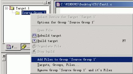 注意到“Source Group 1”文件夹中多了一个子项“Text1.c”了吗?子项的多少与所增加的源程序的多少相同 7)现在,请输入如下的C语言源程序:
