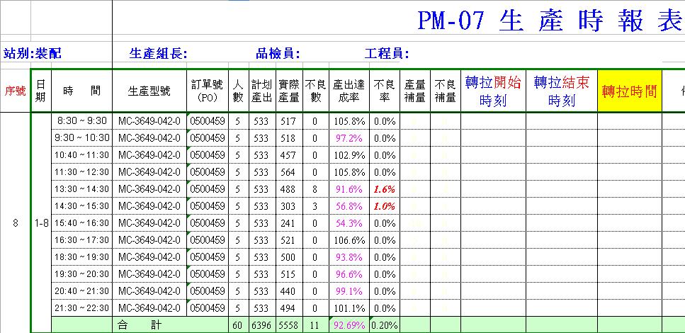 • 先进的按时段管理方法,每天可设置1~20个工作时段。在每个工作时段尾看板将实时数据保存,