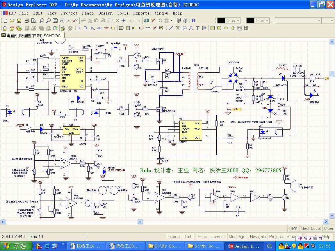 刚设计好的保护功能齐全的1000W电鱼机原理图,时间紧还没成机,部分元件也欠缺。请高手指点。