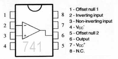 UA741通用高增益运算放大器,最常用的运放之一,应用非常广泛,双列直插8脚。工作电压±22V,差分电压±30V,输入电压±18V,允许功耗500mW.其管脚与OP07(超低失调精密运放)完全一样,可以代换的其他运放。