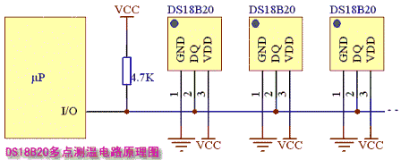 要想使DS18B20进行精确的温度转换,I/O线必须保证在温度转换期间提供足够的能量,由 于每个DS18B20在温度转换期间工作电流达到1mA,当几个温度传感器挂在同一根I/O线上进行多点测温时,只靠4.7K上拉电阻就无法提供足够的 能量,会造成无法转换温度或温度误差极大。
