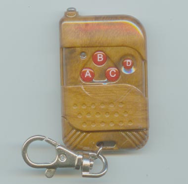 四键遥控器:面板上有A、B、C、D四位操纵按键及一个发射指示灯。发射机内部采用进口声表谐振器稳频,频率一致性非常好,稳定度极高,工作频率315MHZ频率稳定度优于10-5,使用中无需调整频点,特别适合多发一收等无线电遥控系统使用。 技术指示: 采用PT2262编码IC 发射频率315MHz 发射距离100米左右 尺寸:58x39x14mm 工作电压 12V(23A电池已配) 工作电流 ≤9mA