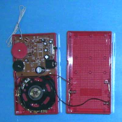 FM广播信号经天线接收后由C1、C2、C3、L1组成的带宽滤波电路滤波,除去88.0MHz--108.0MHz以外的信号,然后从IC的12脚输入到内部进行高频放大,再经9脚外围元件C5、PVC、L2选频回路选出要接收的广播信号去与7脚外接的C6、PVC、L3、C7组成的本振回路混频,从IC CXA1191的14输出10.7MHz的中频信号,经10.7MHz的中频滤波器滤掉10.7MHz以外的信号后从17脚输入到内部进行中频放大,后经内部电路和2脚所接的陶瓷晶振组成的鉴频电路鉴频,从23脚输出音频信号。23脚输出的音频信号很小,通过C16再从24脚送入内部进行音量控制、功率放大后,最后才从27脚输出,经C19推动喇叭发声。15脚为波段选择引脚, AM接收时接地,FM接收时接103瓷片电容对地。19脚为调谐指示引脚,收到一定强度的信号后输出低电平。4脚为电调音量控制端。