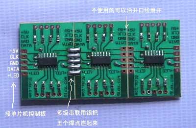1寸数码管显示板(光板),每片0.5元。该板主要为单片机端口扩展用的,可以1级到多级的连接使用(本站曾经使用过四十多级给客户开发过产品)。使用1寸红色超亮共阳数码管,一个笔画由一个LED组成,所以+LED电源取5V即可。电阻和74HC164为贴片元件,体积小巧。板上有四级连接在一起,其中各级间已经预留有开口,如果不用四级,可以分别掰开使用(下面的图为已经掰开了一级),如果要使用四级以上的,也可以很方便的首尾相接起来使用。
