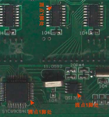 有些电子基础不好的朋友请一定要注意,贴片元件脚比较多,也不要害怕过于紧张,特别是IC脚位不要焊错,1脚一定要仔细点,放正确。元件多了问题查起来不好查,慢一点不要紧,这样也可以省了检查的功夫,一个地方不焊好,可能查好久都查不出问题,有可能检修的时间,会相当于你几倍安装的时间,所以大家一定不要急,平静心情,慢慢看清楚再焊。这是一个学习焊接贴片元件的实践过程,关于贴片元件焊法本站在1404发射套件有介绍,此处就不一一介绍了,不会的可以参照一下这里/0/s---2727--.htm;本站希望大家花多一点时间一次性成功,关于一些不认识元件的朋友可以参照下图