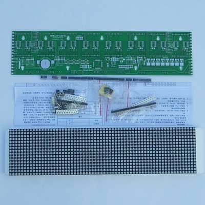 64*16象素4字点阵屏套件:本套件主要是练习贴片元件和单片机者可以选择,制作成功后并具有广告宣传实用价值。广泛应用于商店、商场、学校、布告栏、广告牌、汽车报站、公共场所提示、汽车道闸系统显示、个性化摩托车汽车装饰等等。