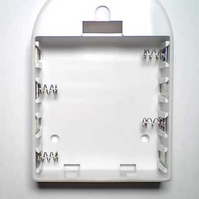 和后壳配合形成完美、结实的四节5号电池盒。本电池盒设计成可以任意连接使用。 |