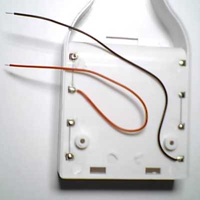 2条8CM导线连接电路板和电池盒正负极,2条12CM将电路板和电动机相连接,让电动机受控制。 |