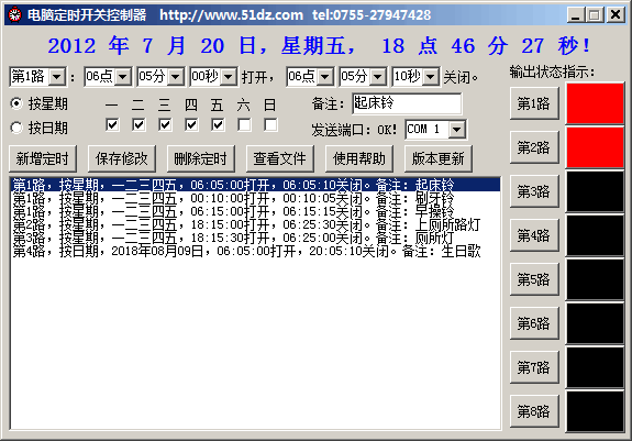 您想利用电脑来控制你的电器、电子设备吗?本站推出免费的《电脑定时开关控制软件》!该软件设置简单、体积小巧、即开即用!本软件可以独立运行,真实演示,配合本站的控制板,就可以实现您想要的功能!