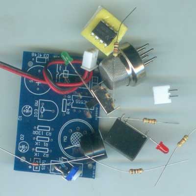 气敏头用QM—2。RP采用阻值为普通10kQ的电位器,报警发声元件既可采用蜂鸣器,其它元器件无特殊要求。