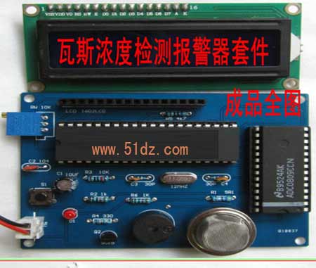 瓦斯浓度检测1602显示报警实验套件是由单片机AT89S52与MQ智能瓦斯传感器为核心,包含甲烷浓度采样器、LCD显示器和报警装置等组成。该检测仪可以有效的监测低浓及高浓瓦斯,试用范围非常广泛。监测到的信息传输到单片机,经单片机处理后发出指令,如果瓦斯超过规定值,该系统可以立即发出声光报警。该系统可有效的降低瓦斯事故发生率,结构灵活,扩展性强,具有较高的性价比,性能优良,是学习单片机  电子制作实训很好的选题。