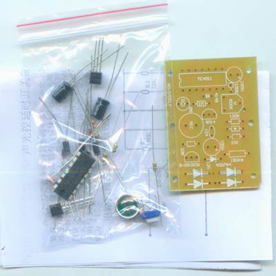 声光控延时开关元件包配件详细说明:印刷电路板,原理图,元件清单,元件,制作说明等等见上图所示。