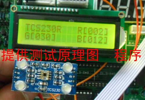 当TCS230识别颜色时,就用这3个参数对所测颜色的R、G和B进行调整。这里有两种方法来计算调整参数:1、依次选通三颜色的滤波器,然后对TCS230的输出脉冲依次进行计数。当计数到255时停止计数,分别计算每个通道所用的时间,这些时间对应于实际测试时TCS230每种滤波器所采用的时间基准,在这段时间内所测得的脉冲数就是所对应的R、G和B的值。2、设置定时器为一固定时间(例如10ms),然后选通三种颜色的滤波器,计算这段时间内TCS230的输出脉冲数,计算出一个比例因子,通过这个比例因子可以把这些脉冲数变为255。在实际测试时,室外同样的时间进行计数,把测得的脉冲数再乘以求得的比例因子,然后就可以得到所对应的R、G和B的值。