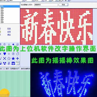 8个IO驱动32颗高亮发光二极管,显示效果更好,自适应的更好。上位机改字的功能,使得改字很方便,上位机功能可支持输入文字,大小任意,只要在32*64这个区域内就行。支持画图,导入BMP格式图片及保存图片,一共可以配置8张图片,每个图片独立,软件自带各种图案,也可从Word里导出图案,显示图案在范围内随便定义大小。