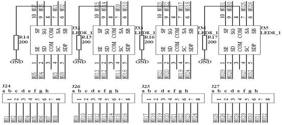 在该模块中,每一路端口对应着一个具体的数码管,具体的电路原理图如图1.11所示: