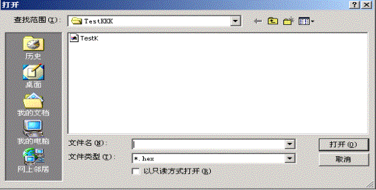 (1). 装载:是把经过KEIL C软件转化成HEX格式的文件装入区域1中,当单击“装载”按钮时,出现如图3.4所示的对话框。