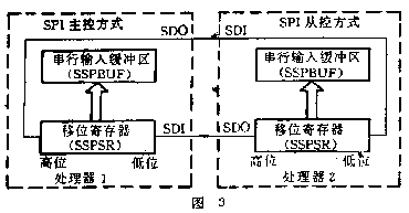 主控器(微处理器1)通过SCK信号来开始传输数据。数据通过移位寄存器在各自的时钟边沿传送,并
